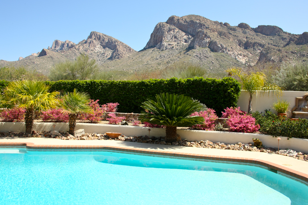 The west end of the Santa Catalina mountains north of Tucson were free from snow. The view above is from the pool area looking east.
