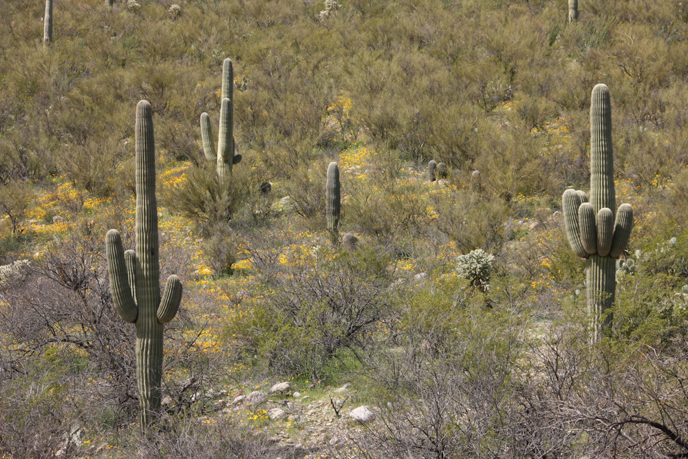 We traveled east past the Colorado River into Southern Arizona and as we did, the terrain was heavily populated with cactus and grasses from the recent rains.