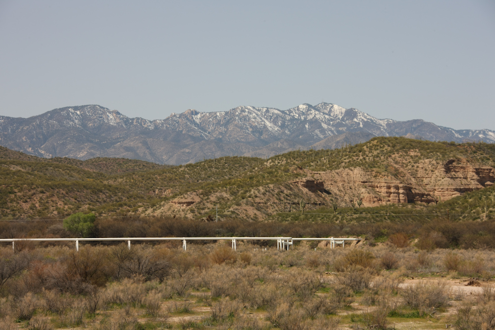Along the San Pedro river is a major natural gas pipeline that provides services to "points west". The snow covered Rincon Mountains are in the distance.