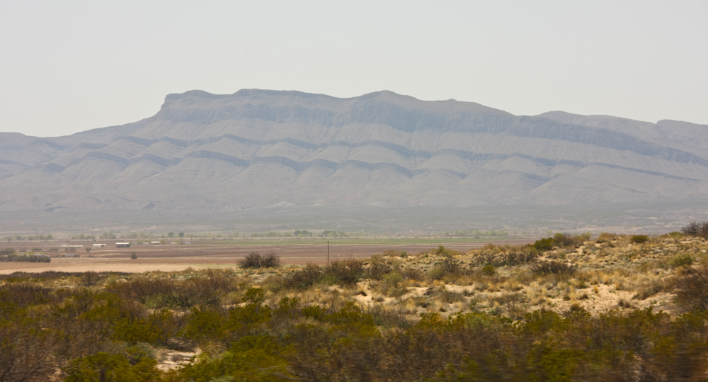 Looking south into old Mexico, large escarpments were visible from the highway. The Rio Grande river is in the valley.