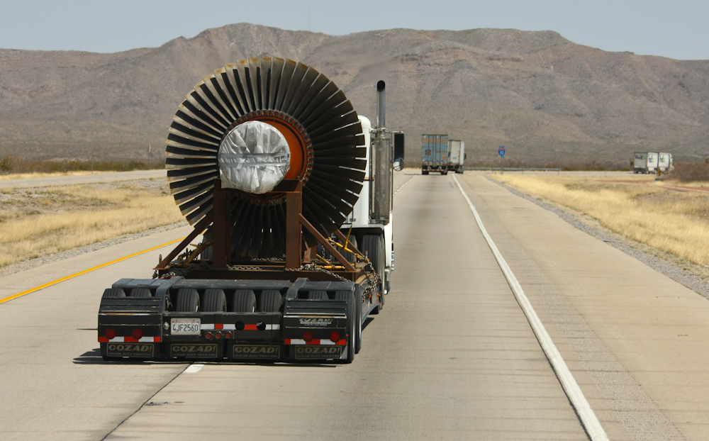 Sometimes on the highway you see interesting cargo pass you. Above is the main shaft of a large gas turbine.