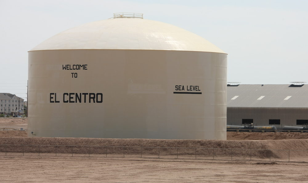 El Centro is the bigges city in the region and the "high point" of the town (both literally and figuratively) is this water tank near the freeway. As I stated above, this area is below sea level.